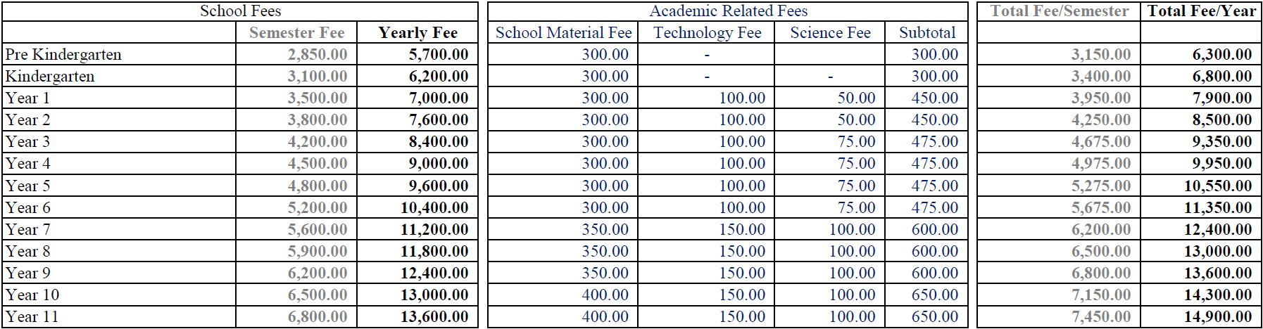 3.The specified fees are exclusive of several additional costs, including but not limited to textbooks, workbooks, extracurricular programs, and any other associated supporting charges.